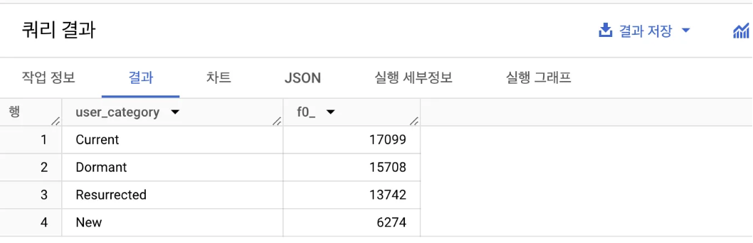 retain user를 new + current + resurrected + dormant user로 나누는 쿼리를 작성해보세요.
